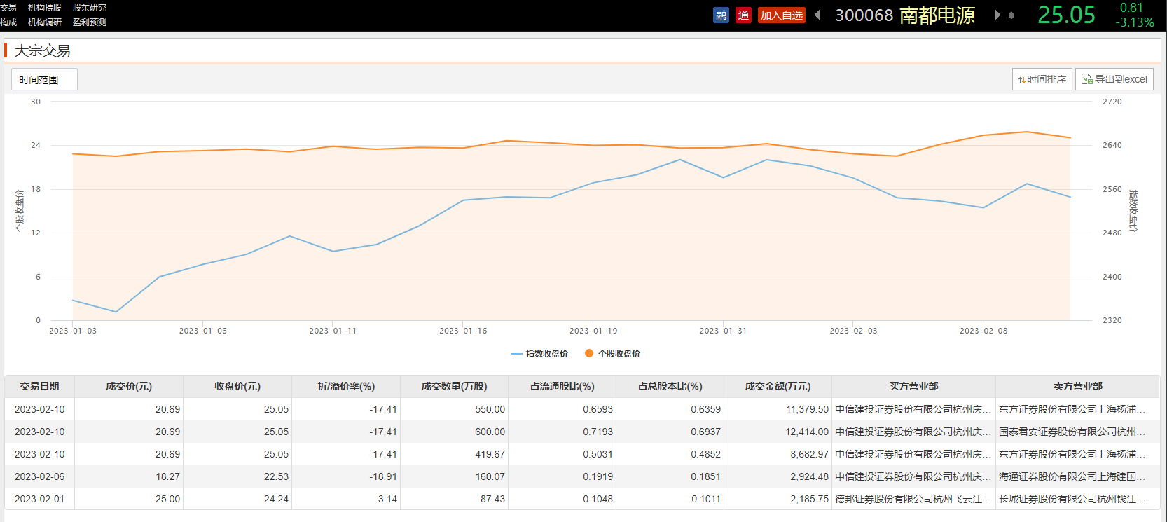 南都电源2月10日大宗交易平台共发生3笔成交,合计成交量1569.67万股,成交金额3.25亿元。进一步统计,近3个月内该股累计发生5笔大宗交易,合计成交金额为3.76亿元。