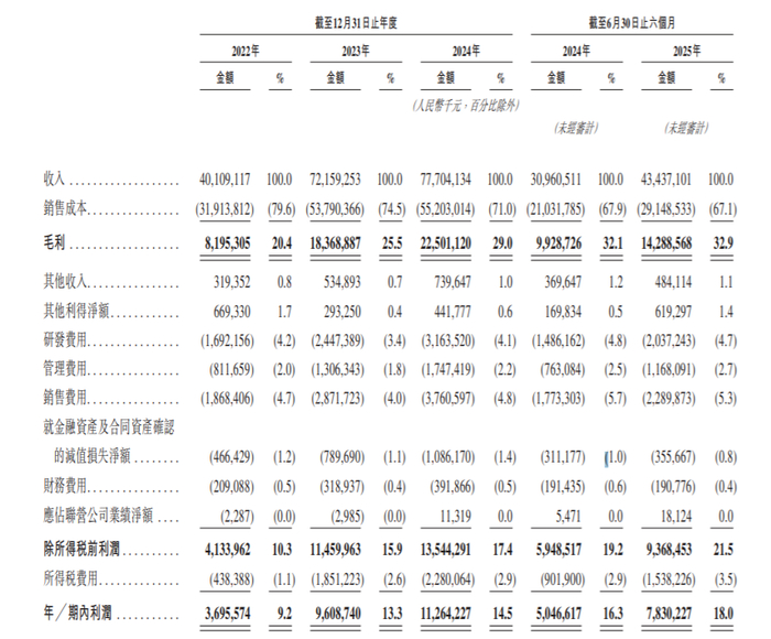 2025年上半年,实现营业收入434.37亿元,同比增长40.3%;净利润78.30亿元,同比增长55.14%。