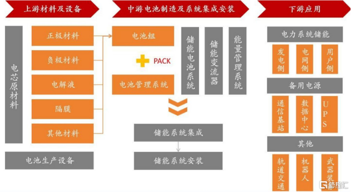 储能产业链上游主要为正极材料、负极材料、电解液、隔膜等电芯原材料,中游包括电池管理系统(BMS)、储能变流器、能量管理系统(EMS)等关键组件,以及储能系统的集成、安装与调试;下游覆盖发电、电网、工商业、户用及离网储能场景的运营。