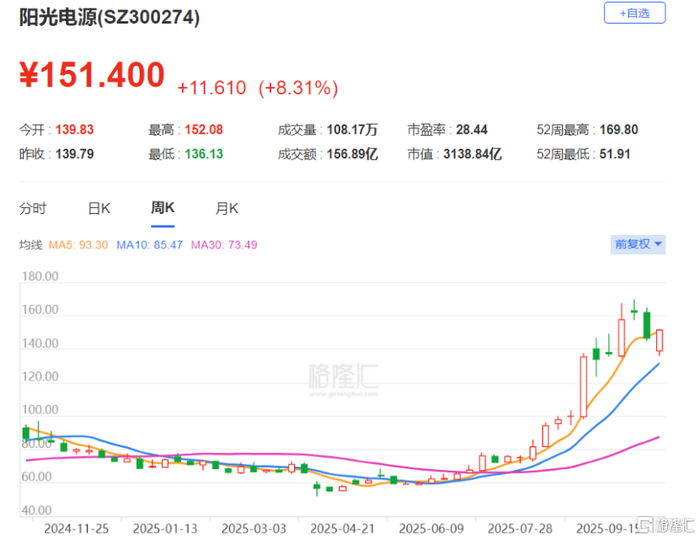 经过多年发展,阳光电源已成为全球光伏逆变器及锂电储能系统龙头,公司2011年在深交所创业板上市,截至今天收盘,市值超3138亿元。