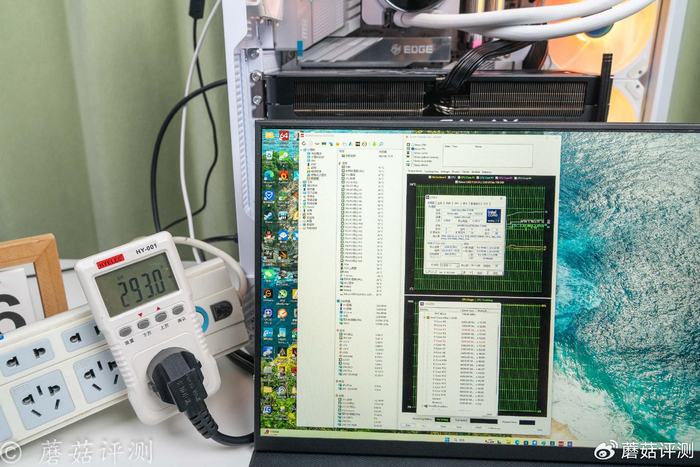 ▼整机输入功耗去到了293W左右,相比较于待机情况,整机输入功耗提高了约200W。