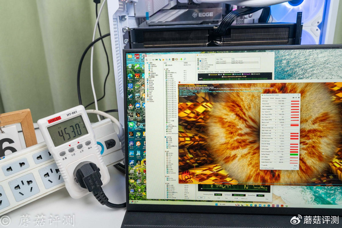 ▼整机输入功耗在453W左右,感觉甜甜圈的负载略低一点。