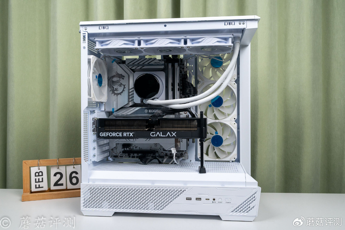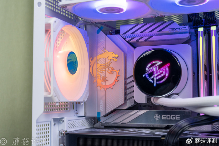 ▼机箱是微星的白龙,采用经典的海景房设计,侧面和前侧有超大面积的侧透玻璃,可以全方位的展示机箱内部的漂亮硬件。