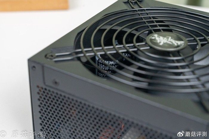 ▼电源的散热风扇尺寸巨大,在140mm左右,支持智慧启停2.0技术,在低负载的情况下会自动停转散热风扇,进一步降低噪音表现。