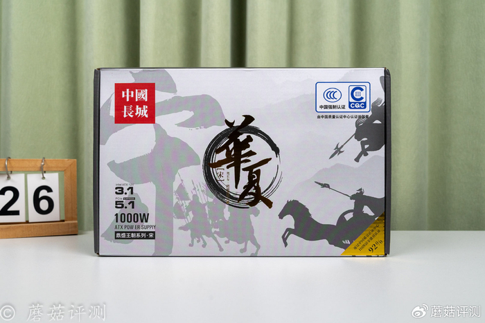 ▼电源的包装风格鲜明,国风味十足,中间有电源的系列名称和产品名称,左下角有电源的额定功率和特性介绍。