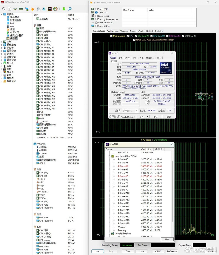 ▼整机输入功耗去到了360W,这颗265K处理器的功耗也很给力了。